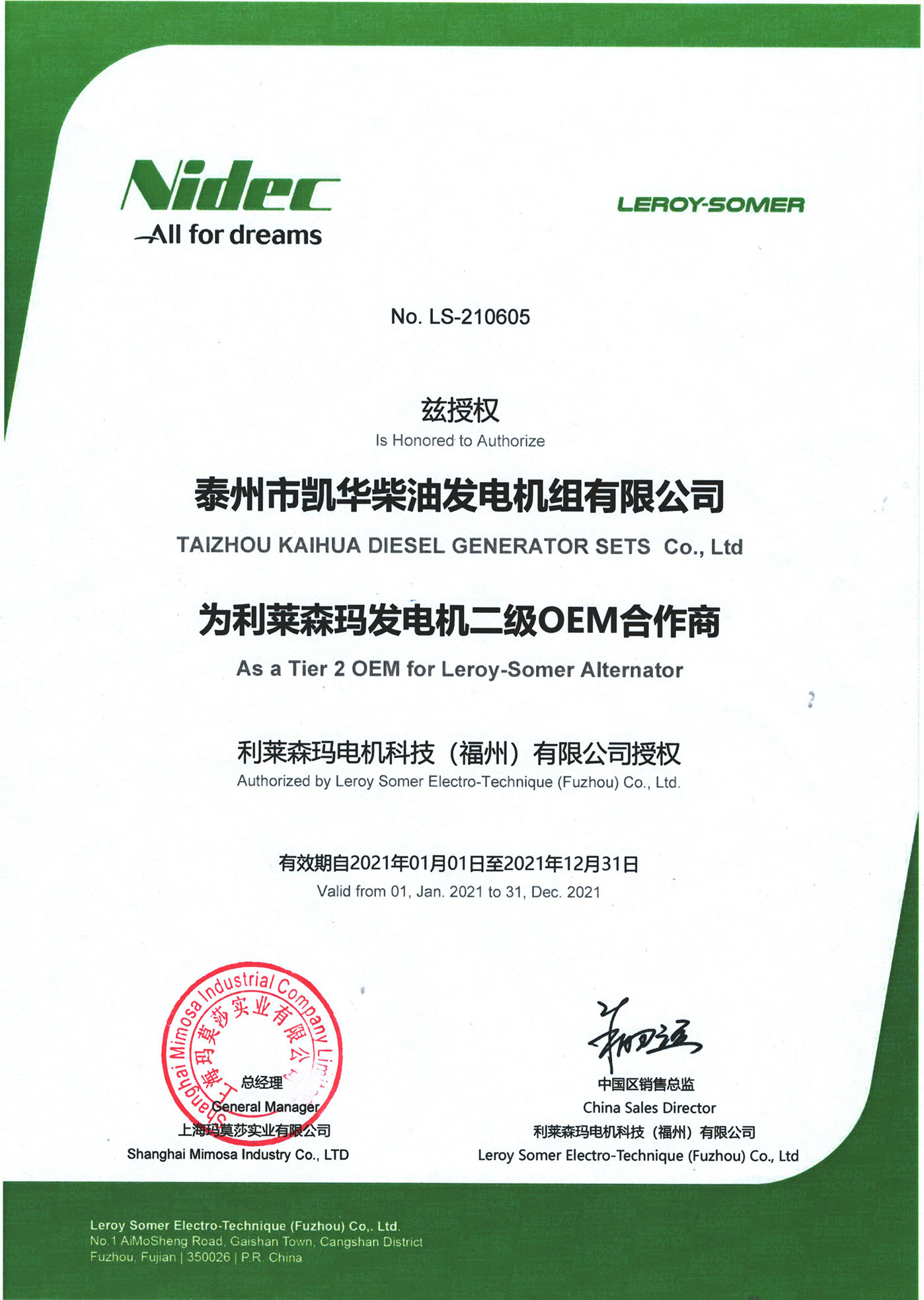 泰州市凱華柴油發(fā)電機組有限公司創(chuàng)建于2003年,是一家集柴油發(fā)電機組的研發(fā)、生產(chǎn)、銷售為一體的高新技術(shù)民營企業(yè),公司目前注冊資本金11800萬元人民幣,生產(chǎn)基地占地六十畝,現(xiàn)有各類高素質(zhì)員工一百多名,專業(yè)技術(shù)人員達46人,其中高級技術(shù)人員16人,年銷售額近6億元。公司主營產(chǎn)品:3~3000KW陸用柴油發(fā)電機組,15~600KW移動拖車電站,12~1000KW船用應(yīng)急柴油發(fā)電機組,各種靜音型、中高壓、多機并聯(lián)、燃?xì)獾忍胤N機組以及進口系列柴油發(fā)電機組,可滿足不同客戶的不同電力需求,還可滿足用戶不同電壓、不同頻率的要求。